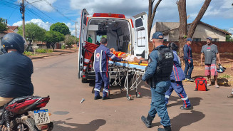 Motociclista foi levado pelo Corpo de Bombeiros para a UPA (Unidade de Pronto Atendimento) de Dourados na tarde desta sexta-feira (17) após invadir a preferencial e bater em um Honda City conduzido po...