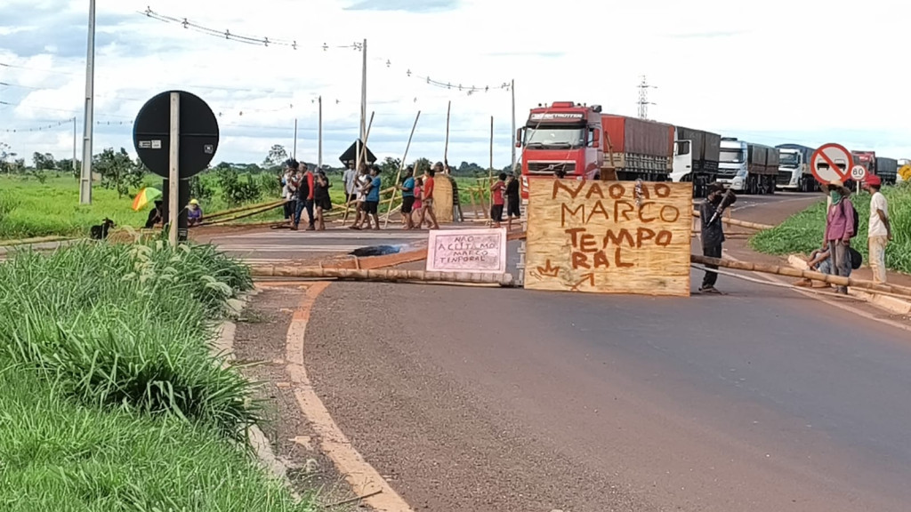 “Vamos continuar bloqueando a estrada esperando uma decisão do Supremo Tribunal Federal contra o marco temporal. Essa proposta significa a morte dos Guarani-Kaiowá e dos demais povos indígenas de Mato Grosso do Sul”, afirmou um dos manifestantes. “Estamos cansados de perder nossas famílias nas mãos dos fazendeiros”.