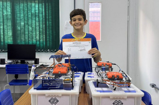 Representando Dourados, o estudante Gabriel Couto Lira, que é aluno do 9º ano da Escola Municipal Rosa Câmara, foi premiado na modalidade Teórica Olimpíada Brasileira de Robótica 2024 Nível 4, com a m...