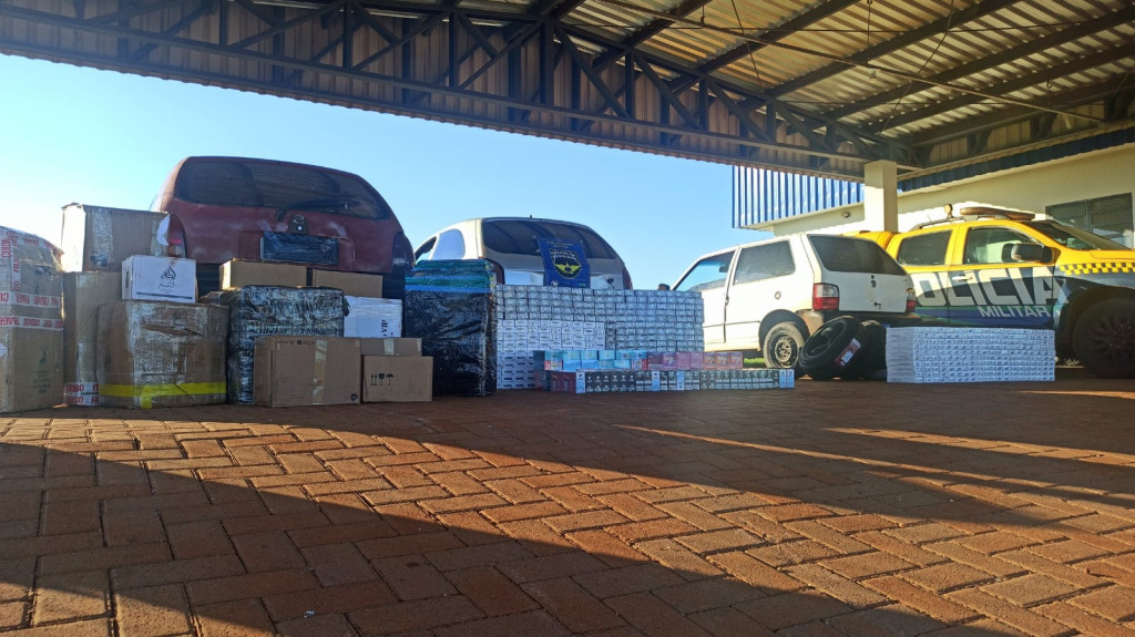 No primeiro veículo, um Fiat Uno, foram encontrados 200 pacotes de cigarros e 30 pneus, totalizando R$ 30.500,00 de prejuízo ao crime.