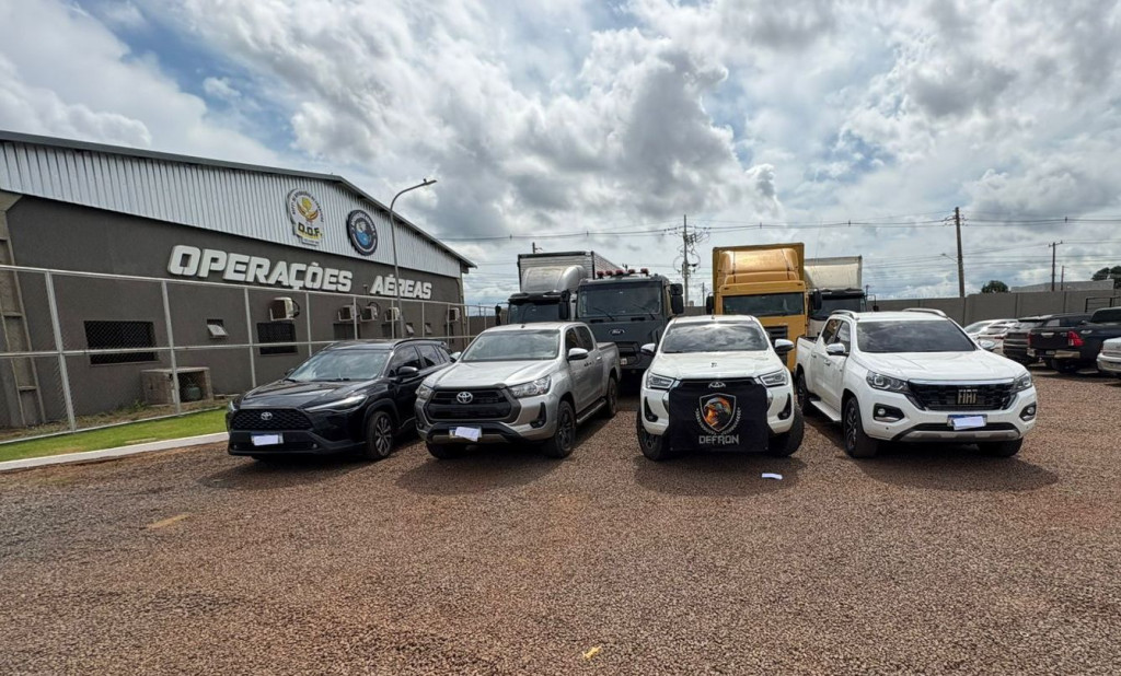 Durante as buscas, foram apreendidos seis veículos de alto valor – uma Toyota Hilux 2022, um Fiat Titano 2024, um Corolla Cross 2021, uma Amarok 2013, outra Hilux 2021 e um quadriciclo Honda. Os policiais também apreenderam documentos, um notebook, 10 celulares e R$ 8 mil em espécie.