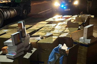 Carga incluía 2.420 celulares, sendo 1.228 iPhones, e estava escondida em caminhão com sucata