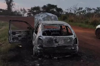 Veículo Volkswagen Gol, foi encontrado pegando fogo por volta da 1h, na estrada, no sentido de Dourados