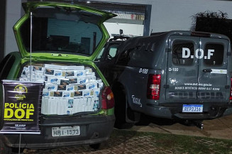 O DOF (Departamento de Operações de Fronteira) apreendeu na madrugada desta sexta-feira (3), na MS-162, zona rural de Maracaju, um Fiat Palio carregado com vários pacotes de cigarros contrabandeados d...