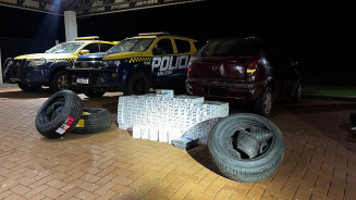 A PMR (Polícia Militar Rodoviária) durante fiscalização de trânsito e combate a crimes transfronteiriços, na MS-164, em Maracaju, apreendeu um veículo Chevrolet Celta carregado com mercadorias contrab...