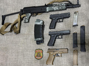 Quatro jovens com idades entre 19 e 22 anos foram presos pela Polícia Federal com um fuzil calibre 5,56, três pistolas 9 milímetros e grande quantidade de munição, em Ponta Porã, na fronteira com o Pa...
