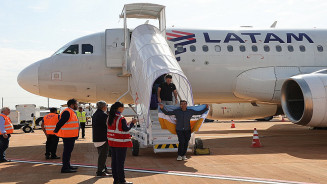 A Latam Airlines decolou pela primeira vez nesta segunda-feira (8) do Aeroporto Fransciso de Matos Pereira com 94% de ocupação do Airbus A319, que tem capacidade para 144 passageiros. A decolagem às 9...